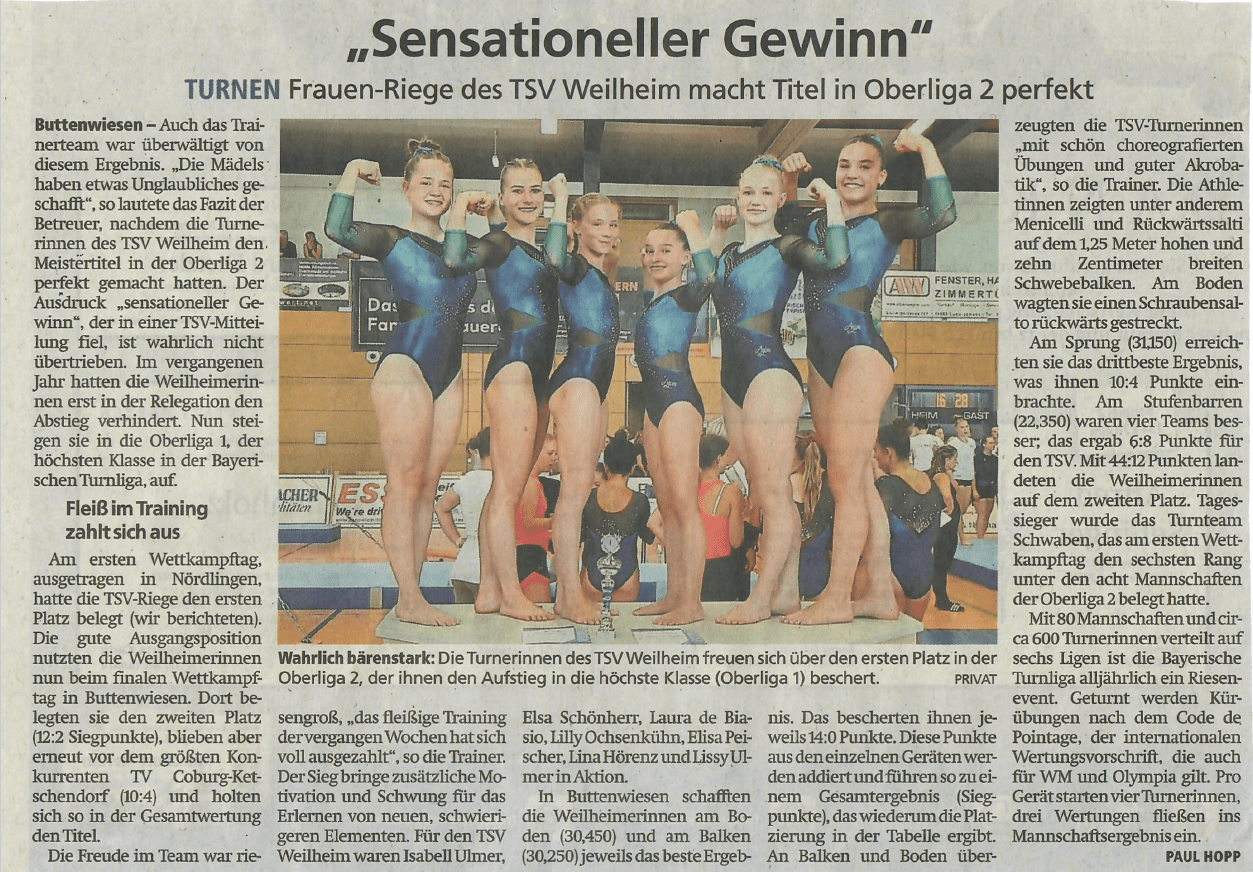 Turnen: „Sensationaller Gewinn“ – Frauen-Riege des TSV Weilheim macht Titel in Oberliga 2 perfekt