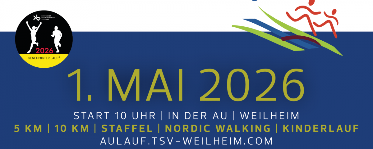 Der Volkslauf mit über 80 Jahren Tradition lädt euch in die wunderschöne Auenlandschaft von Weilheim ein. Ehrenamtlich organisiert von der Leichtathletik-Abteilung des TSV Weilheim, bieten wir euch verschiedene Strecken für alle Leistungsklassen, vom 350 m Kinderlauf über den 800 m Schülerlauf bis zum 10 km Lauf. Wir freuen uns auf viele Teilnehmer!
