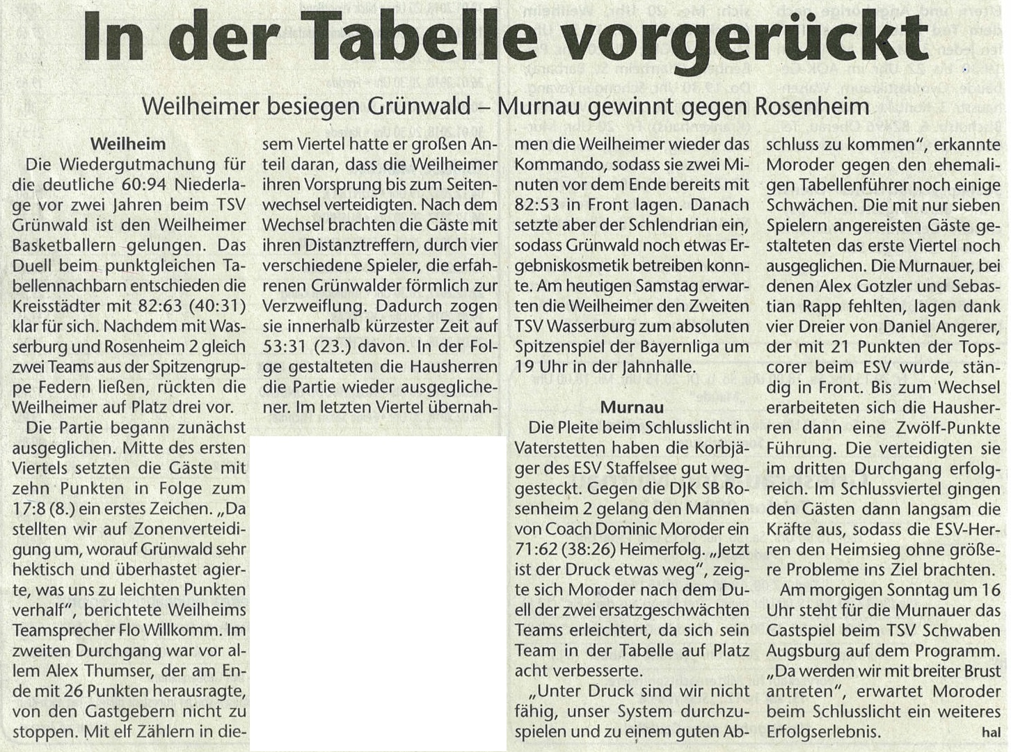 In der Tabelle vorgerückt