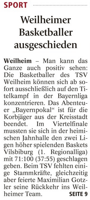 Weilheimer Basketballer ausgeschieden