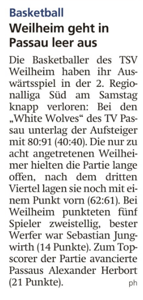 Weilheim geht in Passau leer aus