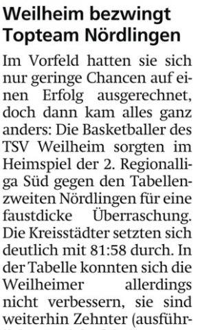 Weilheim bezwingt Topteam Nördlingen