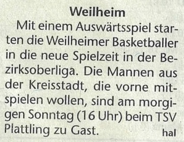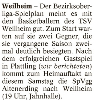 Dankbarer Gegner für Weilheim zum Heimstart