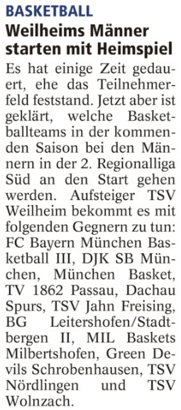 Weilheims Männer starten mit Heimspiel