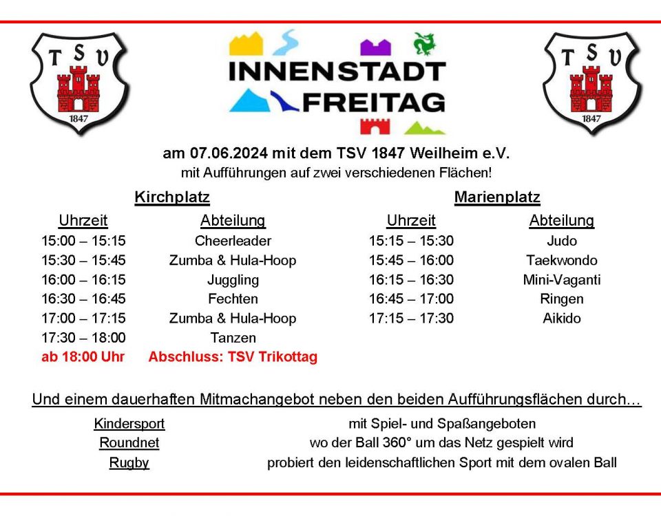 Views: 0 Weilheimer Tagblatt vom 21.6.2024 Presseartikel online www.merkur.de/sport/lokalsport/weilheim/ Bericht der Leichtathletikabteilung: Deutsche Meisterschaften Masters: Diana Stieber erneut Deutsche Meisterin im Hochsprung sowie Dritte im Speerwurf […]