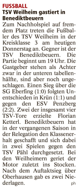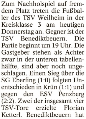TSV Weilheim gastiert in Benediktbeuern