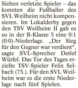 SVL Weilheim verliert im Lokalderby