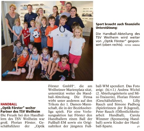 „Optik Förster“ weiter Partner des TSV Weilheim