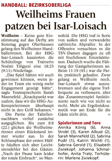 Weilheims Frauen patzen bei Isar-Loisach