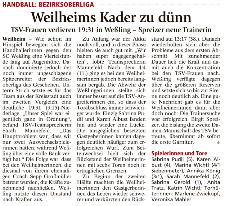 Weilheims Kader zu dünn