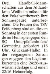 Zweitligist beim TSV Weilheim zu Gast