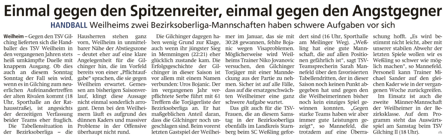 Quelle: Weilheimer Tagblatt 17/18.11.2018