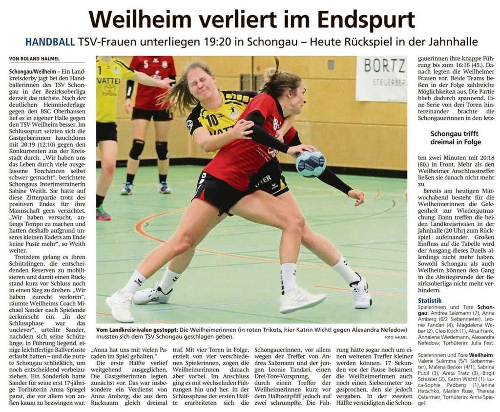 Handball: Diesmal hat Weilheim die Nase vorn