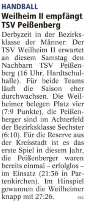 Weilheim II empfängt TSV Peißenberg
