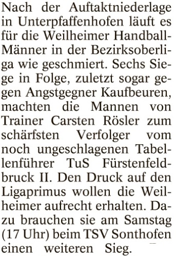 Schwere Aufgaben für Weilheimer Teams