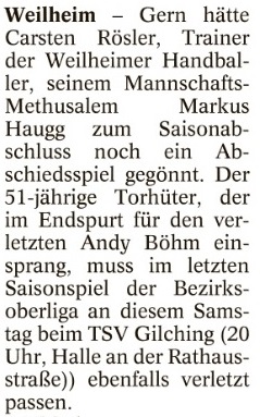 Weilheims Torwart-Oldie fällt aus