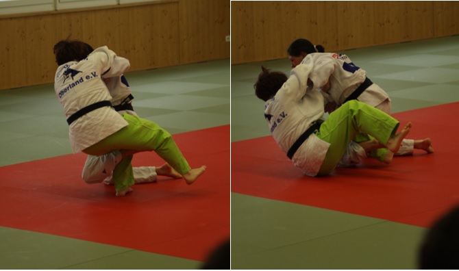 Auch Franziska Bornstädt wurde der Gewichtsnachteil zum Verhängnis. Sie konnte gegen Sabrina Pfordner durch eine Kontertechnik in Führung gehen, bevor sie bei einem weiteren Konterversuch überdreht und ebenfalls festgehalten wurde.