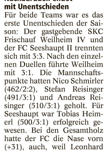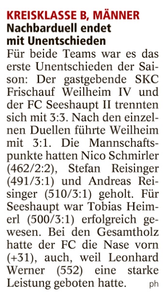 Weilheim gewinnt, Seeshaupt verliert