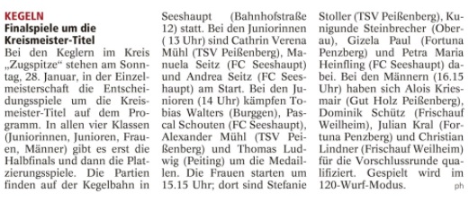 Quelle : Weilheimer Tagblatt vom 26.Jan 2018
