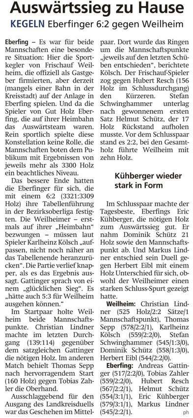 Kegeln: Auswärtssieg zu Hause