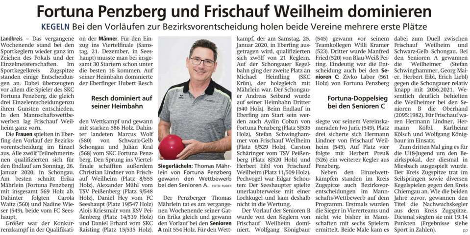 Kegeln: Fortuna Penzberg und Frischauf Weilheim dominieren