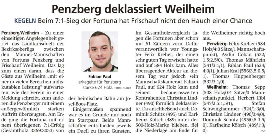Kegeln: Penzberg deklassiert Weilheim
