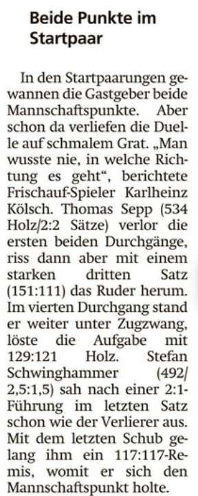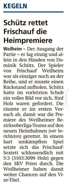 Kegeln: Schütz rettet Frischauf die Heimpremiere