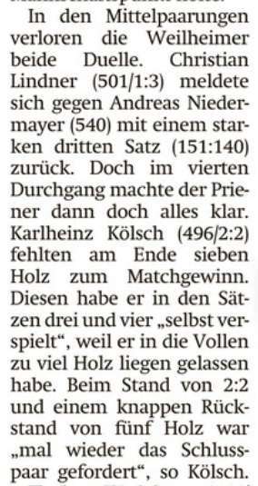Kegeln: Verletzungspech beeinflusst Landkreisderby
