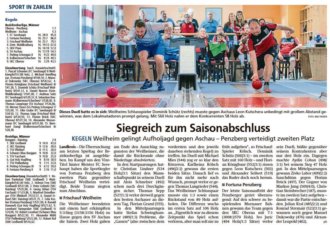 Kegeln: Weilheim hält Rennen um Vize-Titel offen