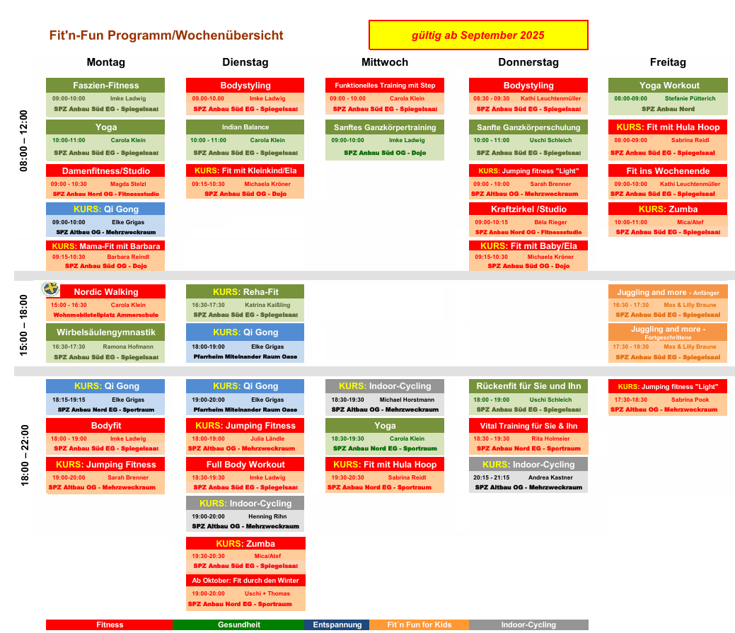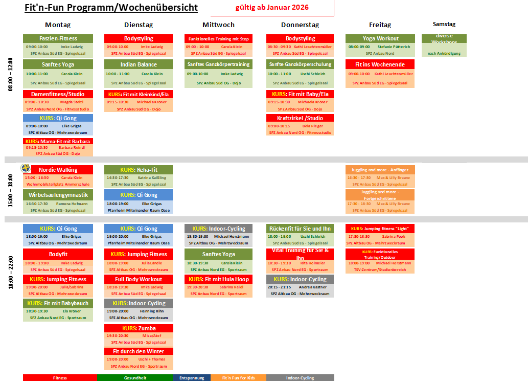 Aktuelles Fit’n-Fun Programm in der Wochenübersicht