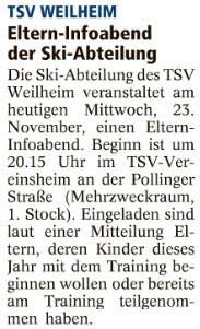Eltern-Infoabend der Ski-Abteilung