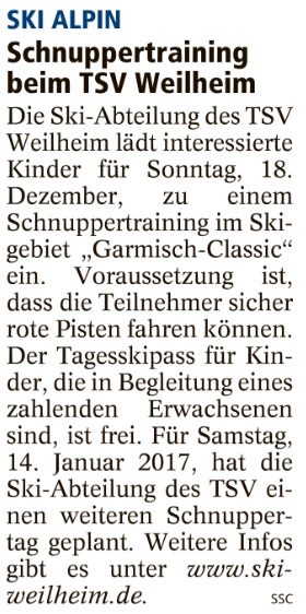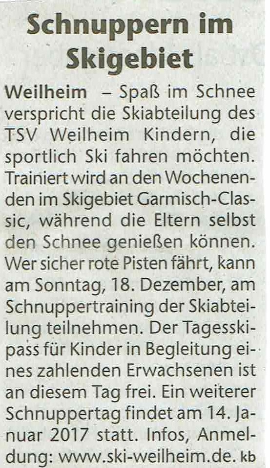 Schnuppertraining beim TSV Weilheim