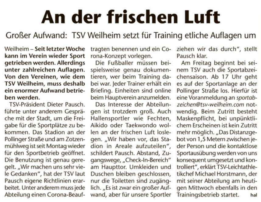 Weilheimer Tagblatt 29.05.2020