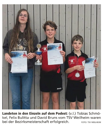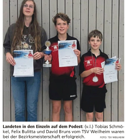 TT-Bezirkseinzelmeisterschaft der Jugend am 21.10.2018 – kompletter Medaillensatz