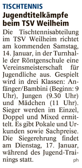 Jugendtitelkämpfe beim TSV Weilheim
