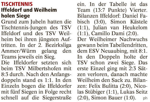 Iffeldorf und Weilheim holen Siege
