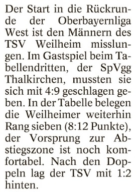Weilheim verliert zum Rückrundenstart