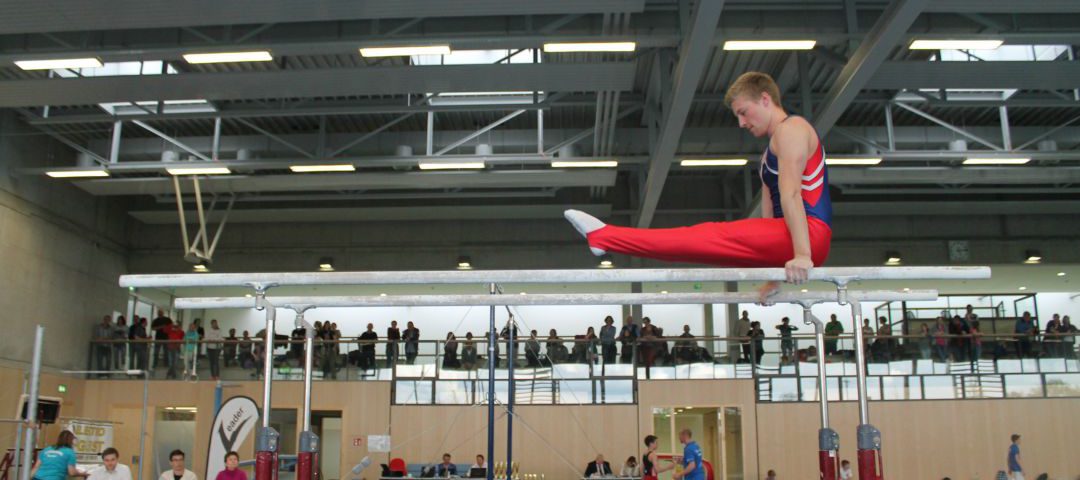 Manuel Förster bei der Vorhalte am Barren