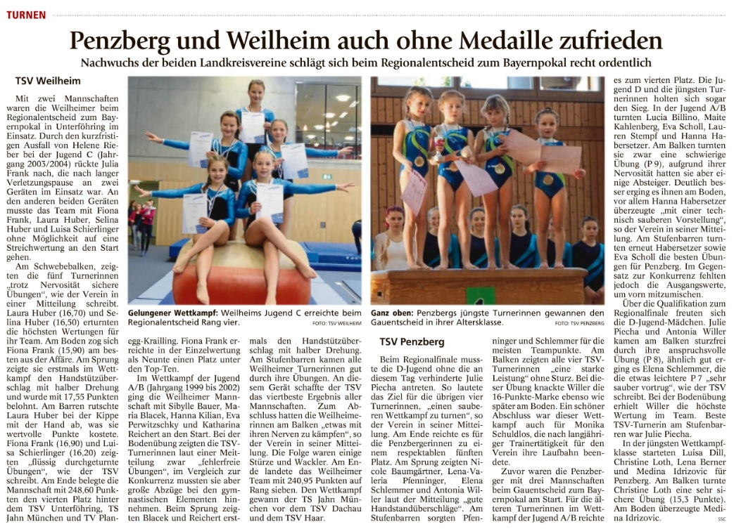 Penzberg und Weilheim auch ohne Medaillen zufrieden