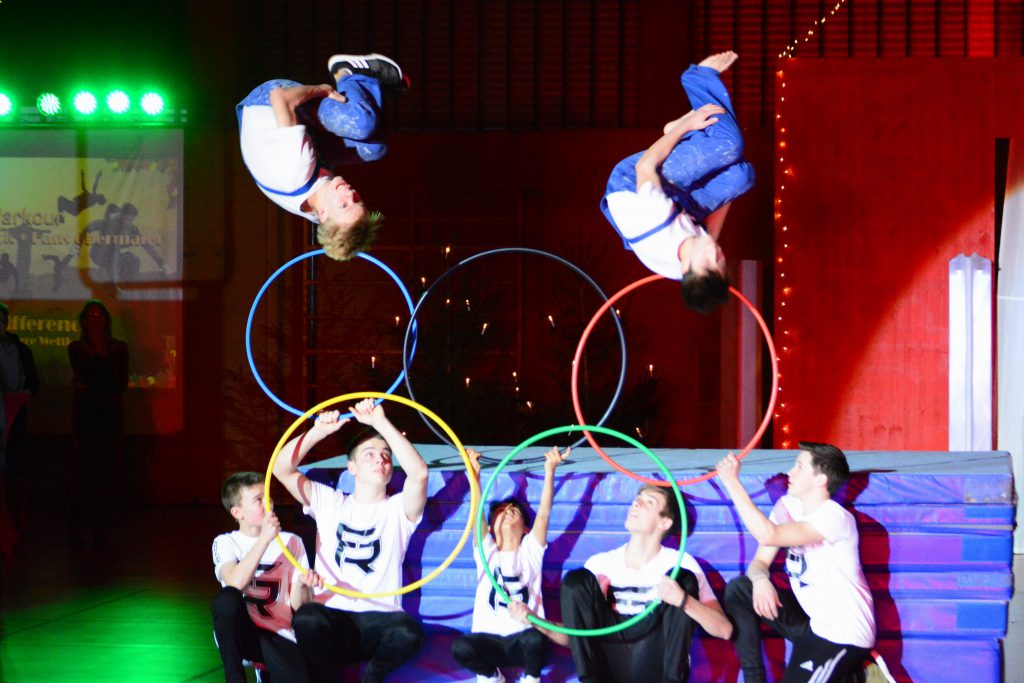 Die Gruppe "Parkour" von Daniel Leibrock zeigte unter dem Motto "The Difference - Der etwas andere Wettkampf" eine tolle Show mit spektakulären Sprüngen und Salti über den Mattenberg und an der neuen Parkour-Box.