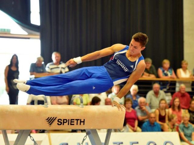 Moritz Kraus bei seiner Übung am Seitpferd (Bild @K. Aumiller, Donau Zeitung)