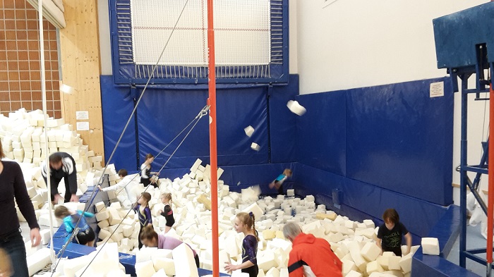 Am Freitag, 14. Dezember 2018 stand die jährliche, große Putzaktion in der Turnhalle der Hardtschule statt. Die Turnerinnen und Turner sowie Trainer/innen und Eltern waren vor Ort, um, vor der verdienten Weihnachtspause, die Schnitzelgrube wieder auf Vordermann zu bringen. Es wurde (vom Nachwuchs) im Bereich der Schnitzelgrube fleißig der Spiegel geputzt, die Eltern und Trainer räumten den mittleren Geräteraum der Turnabteilung leer, saugte ihn aus und räumte ihn wieder ein. Alle Turnerinnen, Turner und Trainer räumten komplett alle Schnitzel aus der Schnitzelgrube. Anschließend wurde diese ausgesaugt und wieder eingeräumt. Die kleinen und großen Helfer/innen hatten sichtlich Spaß bei dieser Gemeinschaftsaktion.