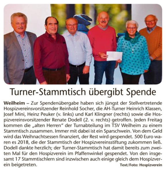 Turner-Stammtisch übergibt Spende