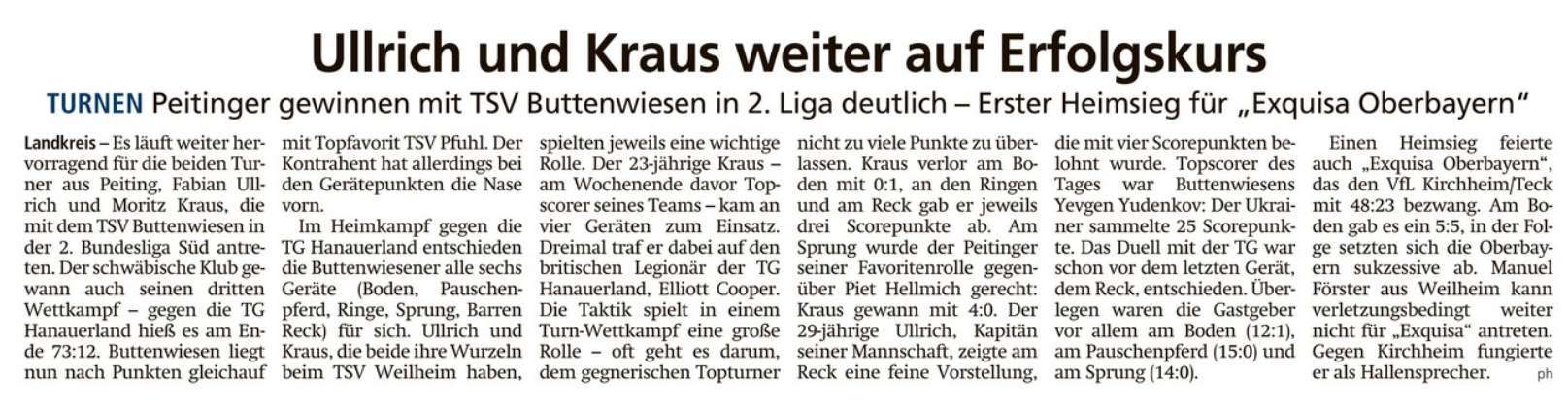 Turnen: Topscorer Kraus, Matchwinner Ullrich