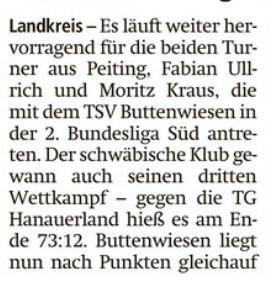Turnen: Ullrich und Kraus weiter auf Erfolgskurs