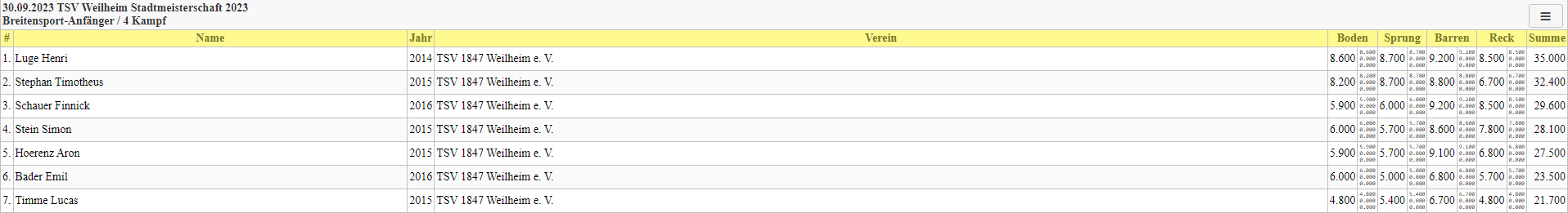Insgesamt ein sehr gelungener, verletzungsfreier Wettkampf mit schönen Übungen sowohl bei den männlichen als auch weiblichen Turner:Innen.